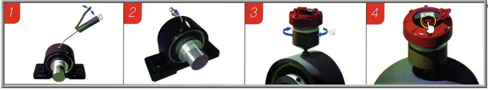 Install one unit on each bearing point. A bearing greater than 120mm (4-3/4") in size needs two units with a non-return valve attached. If a bearing has more than two nipples, install one unit for each nipple.