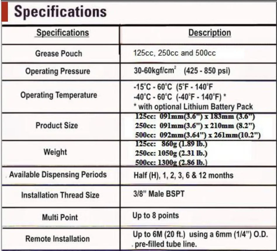 Our M series mechanical lubricators will display the following where applicable: