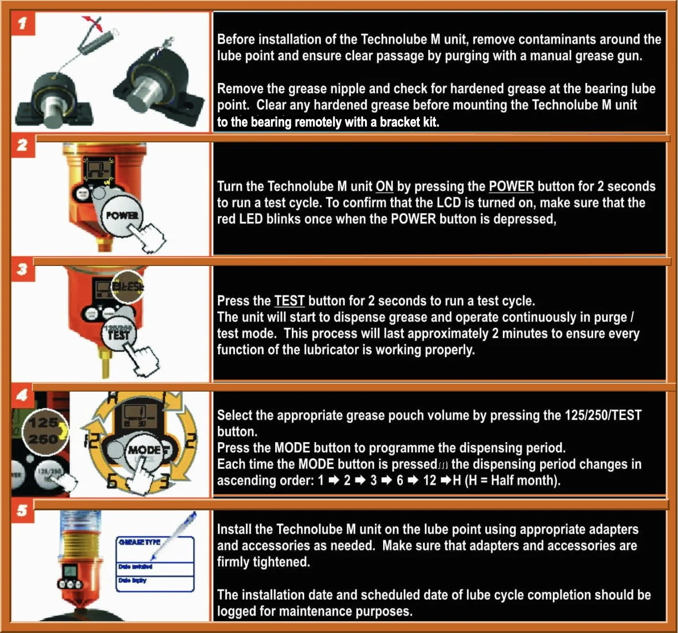 For completely assembled Technolube M, MS, MSB and MEX units initial installation